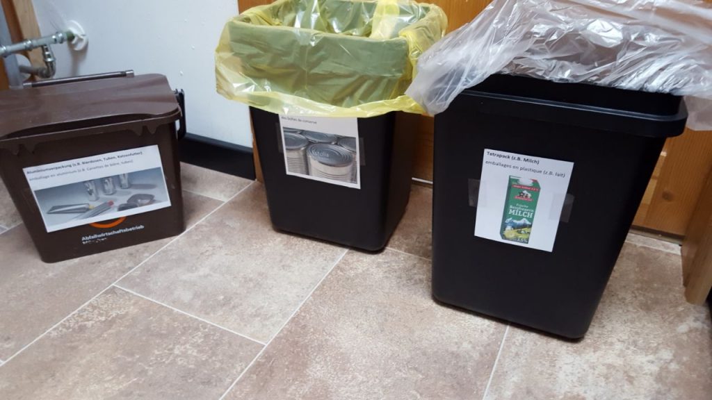 Der Müll muss in abgespültem Zustand dort in die verschiedenen Behälter sortiert werden.