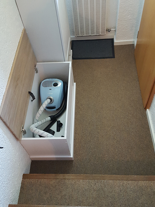 In diesem kleinen Abstellraum haben wir all das reingeräumt, was wir privat brauchen, wenn wir zum Renovieren und Putzen selbst ein paar Tage in der Wohnung verbringen.